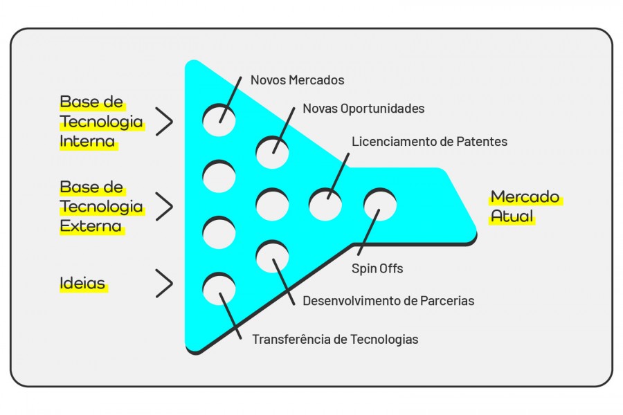 Com o modelo de inovação aberta, os custos das primeiras etapas dos projetos sofrem uma redução significativa, e a oportunidade de trabalhar com especialistas nos assuntos se expande.